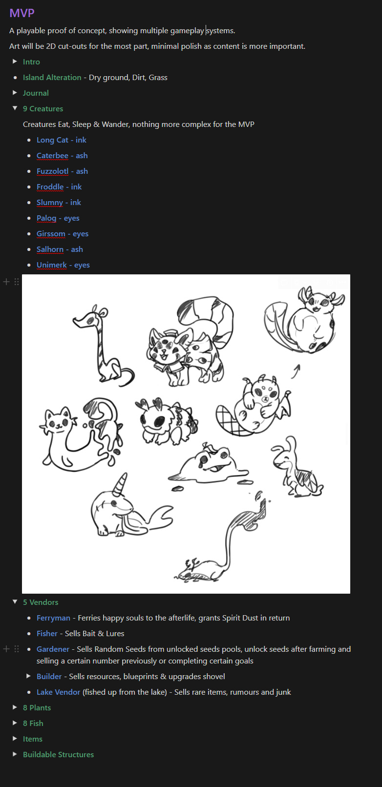 Overall pretty good, not everything on the list was finished but I managed to rough out a detailed MVP plan for Wunderwurld, still a bit of tweaking to do but it’s made me cut a bunch already and from here I can hone in on what systems are left, this makes planning out the leftover tasks far easier.